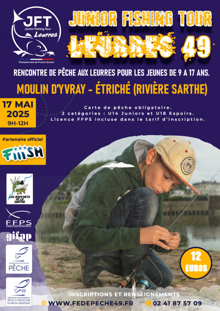 Dans le cadre de la mise en place de circuits de compétition à destination des jeunes au niveau national, la Fédération de Maine-et-Loire pour la Pêche et la Protection du Milieu Aquatique intègre cette démarche à l’échelle départementale en proposant le « Junior Fishing Tour Leurres 49 ».